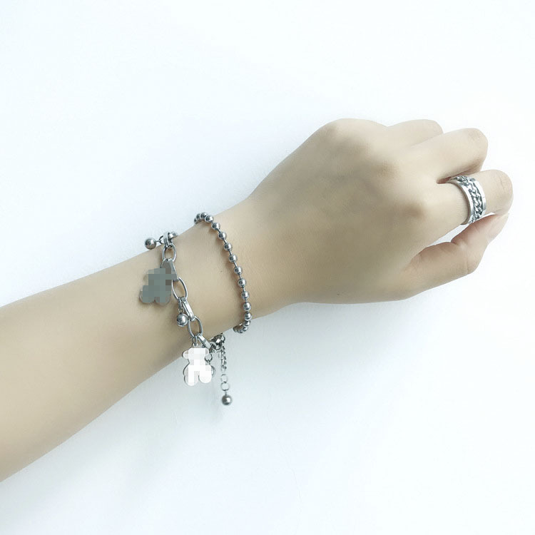 ベアーのブレスレットのステンレスの土のクールな女の子のパンクの2層のベアーの柔らかい砂糖の透かし彫りの丸い玉のチェーンのカップルのチェーンのブレスレット