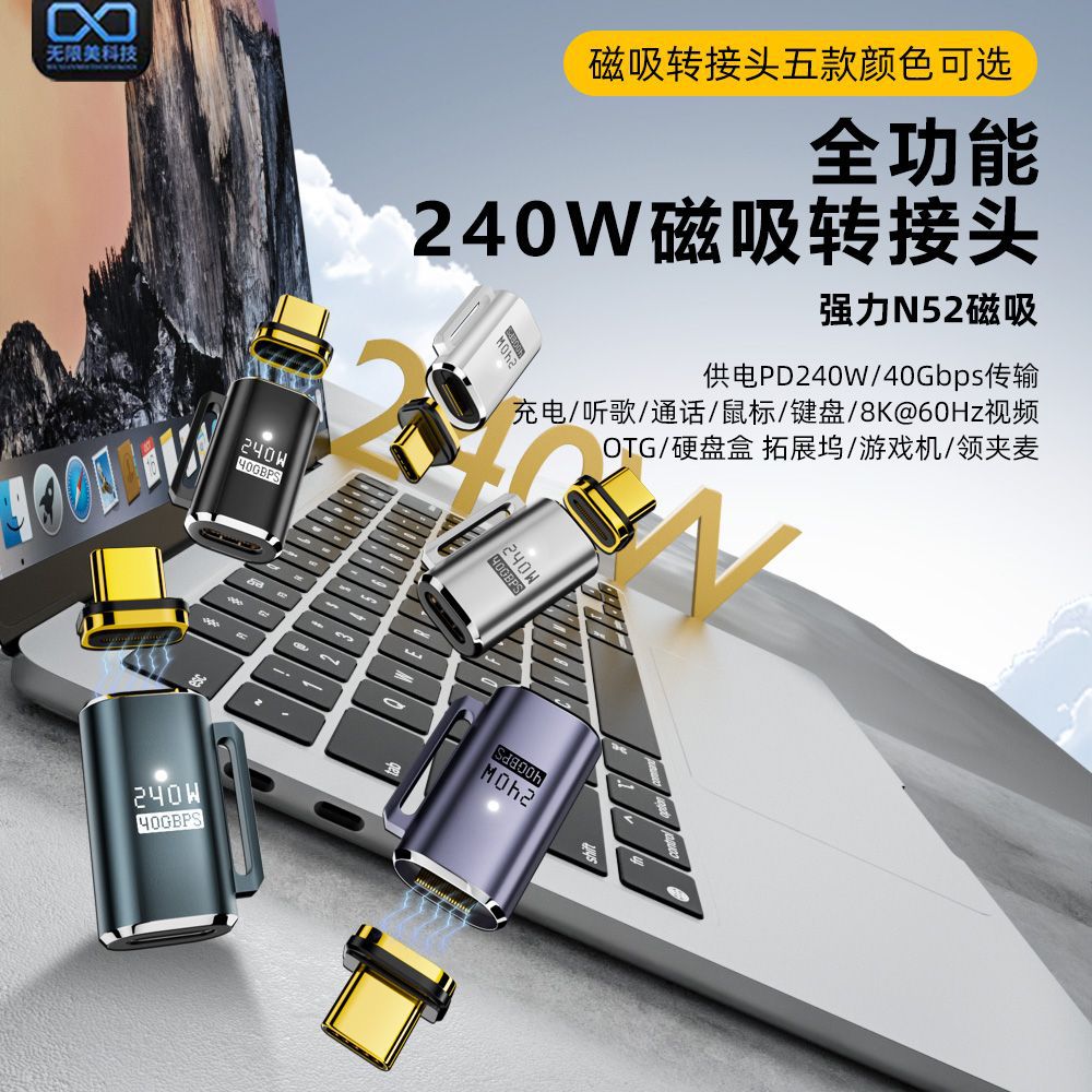 新品全機能240wマグネットアダプターtypec公転母マグネット対応40gbps転送データotg