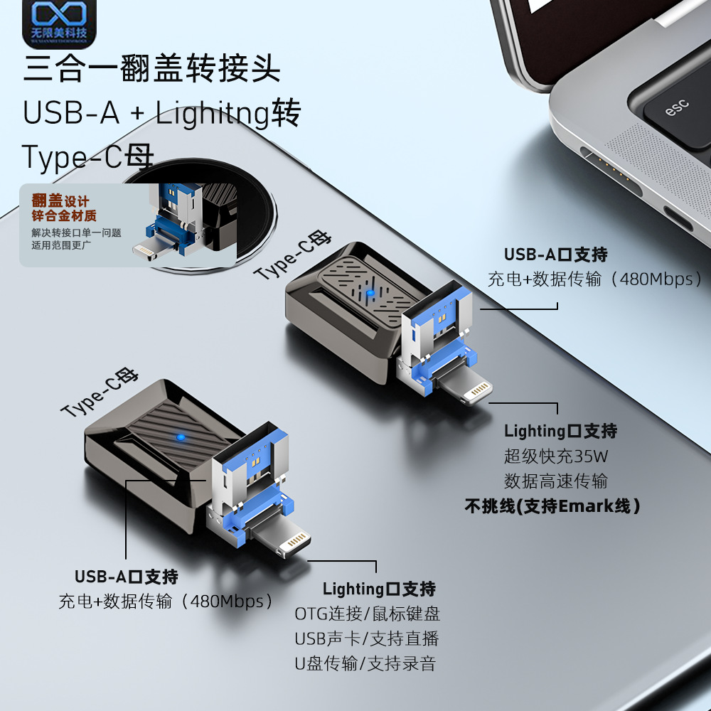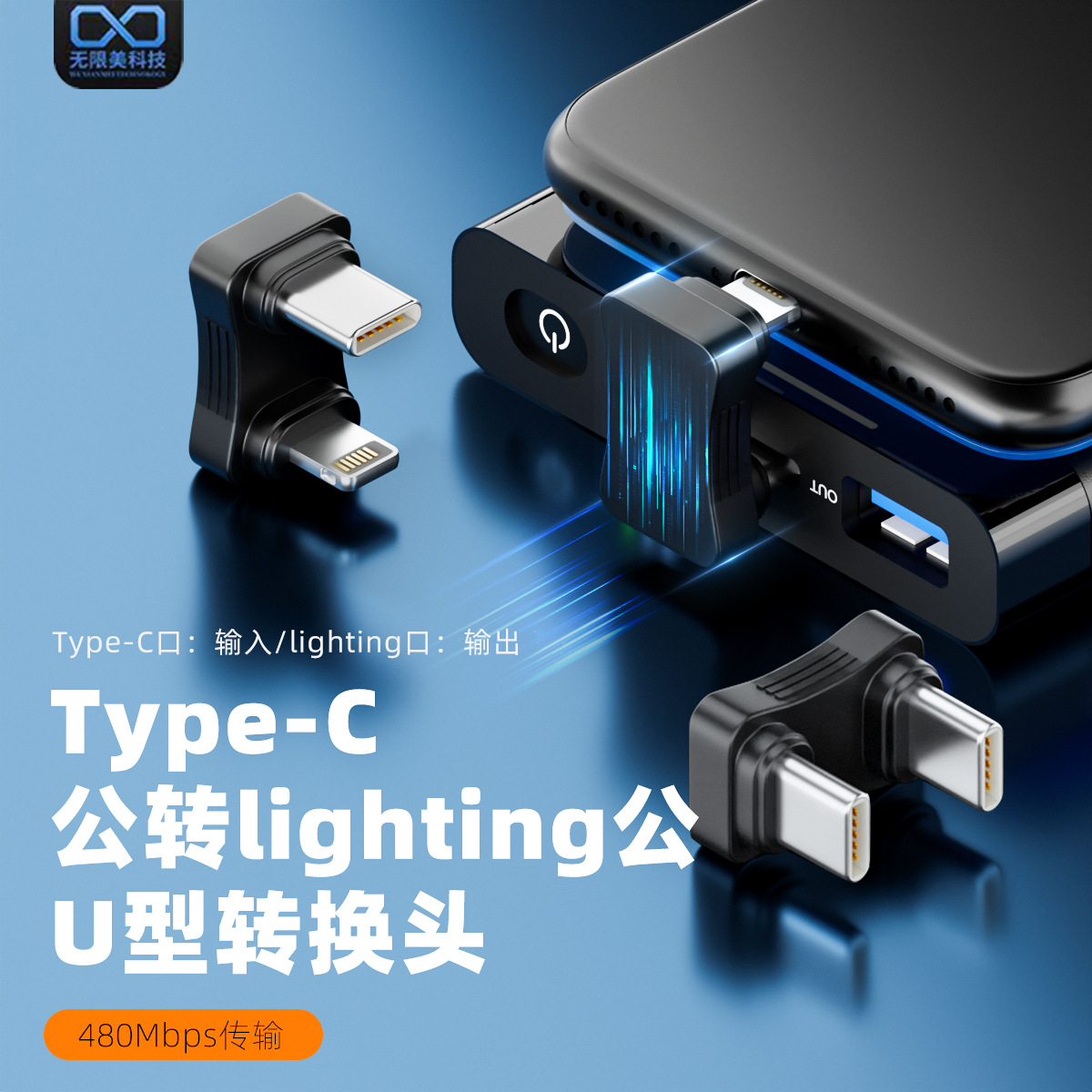 Type-c公転lightning雄u型アダプタは充電データ伝送携帯外付け転送に対応しています。