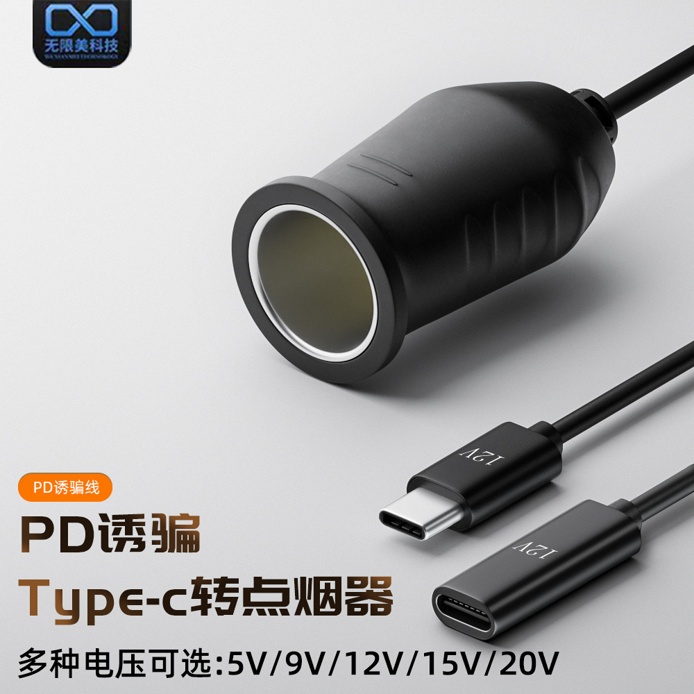 Pd回転誘導シガレット車載母座充電ケーブルtype-c変換シガレットpd充電延長線