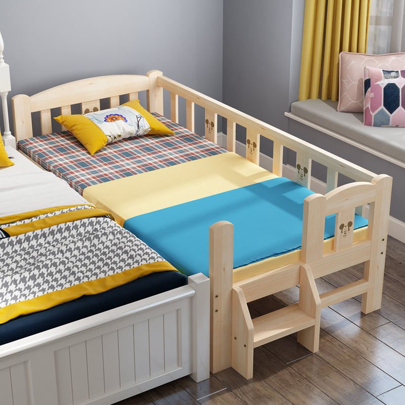 子供用ベッドガードレール付き実木子供ベッド男の子女の子松木ガードレール子供ベッドシングルベッドワイドベッド
