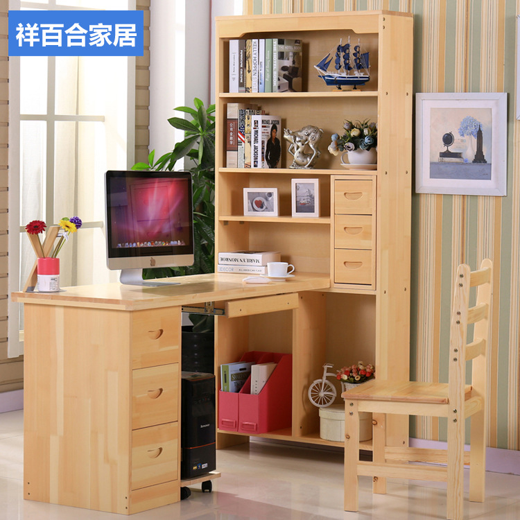 木造の子供の机の角のコンピュータの机のデスクトップの松木の本棚のシンプルで現代的な組み合わせの子供の学習机の本棚
