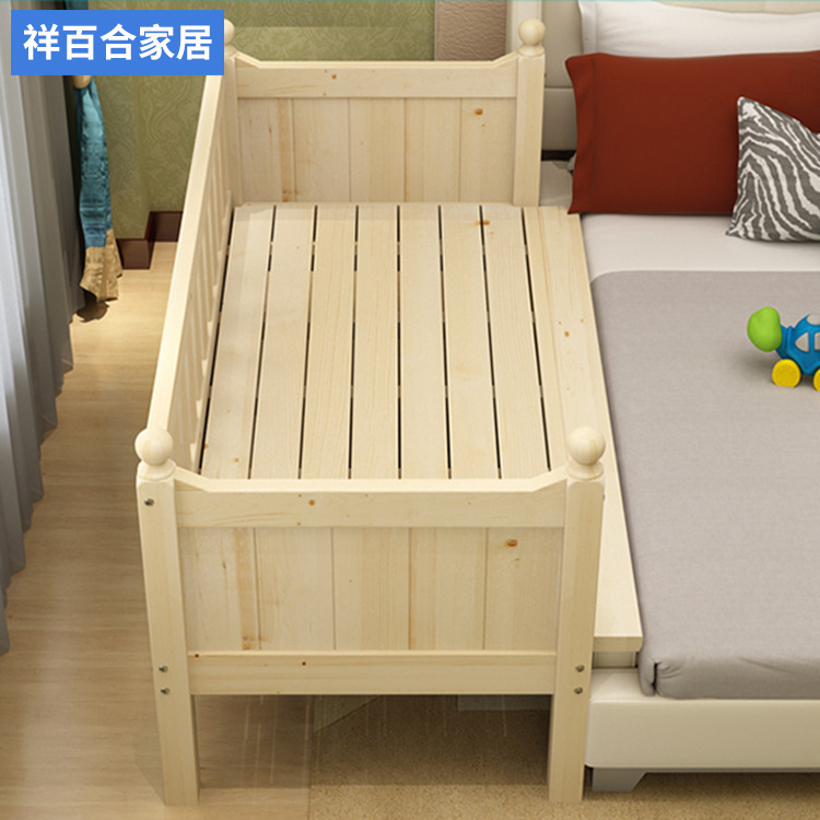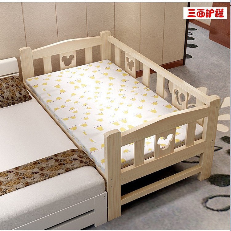 純木造の子供用ベッドはガードレール付きの赤ちゃんベッドの大きいベッドをつなぎ合わせてベッドを広げて子供用ベッドのシングルベッドをつなぎ合わせます。