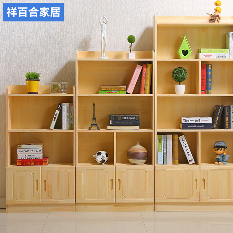 全実木本棚シンプル現代植物棚ロッカー扉付き収納棚棚棚松木本棚花棚