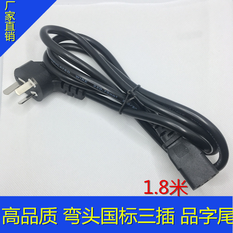 メーカー直供1.8メートル品尾電源コード三平曲げプラグ電源コードパソコン本体品字尾電源