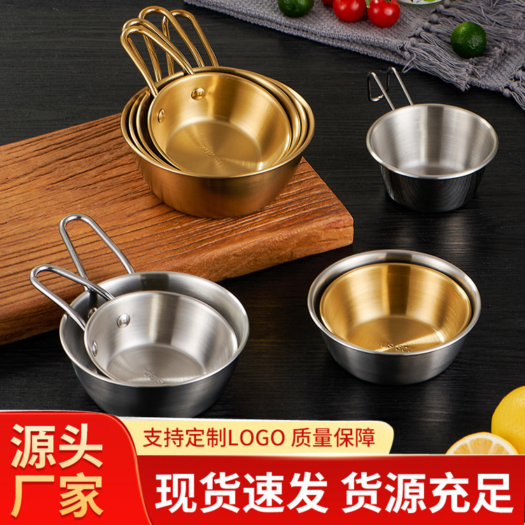 304ステンレスの米酒の碗の韓国式の柄の金色の料理の碗の鍋の軽食は材料の碗をつけてキャンプします。