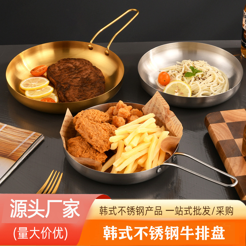 クリエイティブフラット焼きステンレススナック皿ハンドル付き金色商用洋食ステーキデザート皿