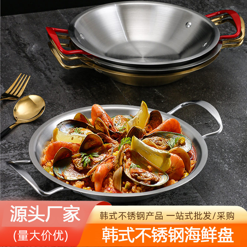ステンレス海鮮皿双耳ザリガニ皿商用韓国風フライドチキン専用皿サラダパスタ皿フライパン