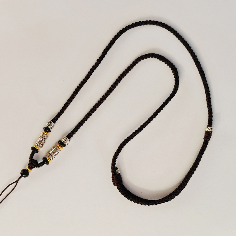 チベット式五路財神のネックレスの縄は手で編みます。