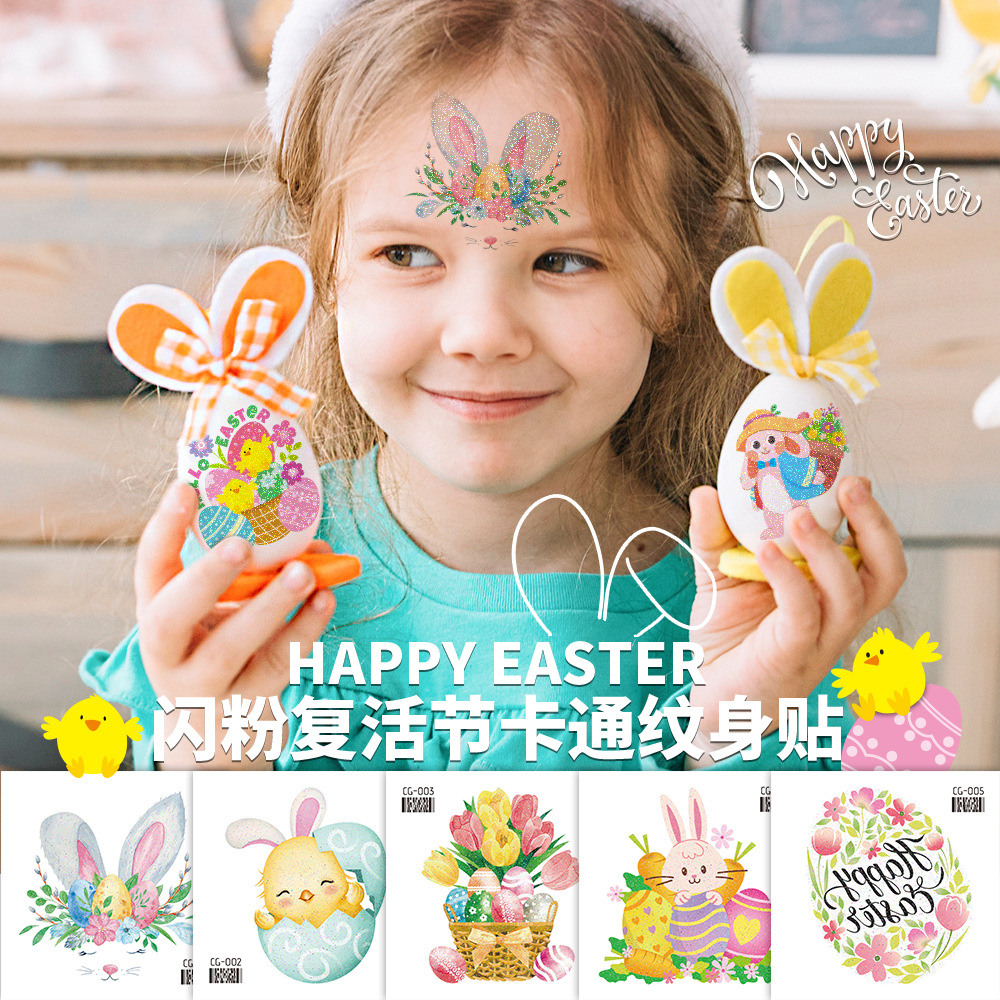 瑞卡竜の新型の閃粉のイースターの漫画の紋章はかわいい顔を貼って腕を貼って使い捨ての文体の貼り紙を貼ります。