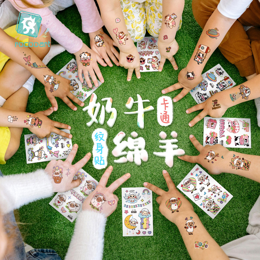 瑞卡竜の新型防水子供の漫画の紋章はかわいい漫画の乳牛の羊の臨時の刺青のシールの卸売りを貼ります。