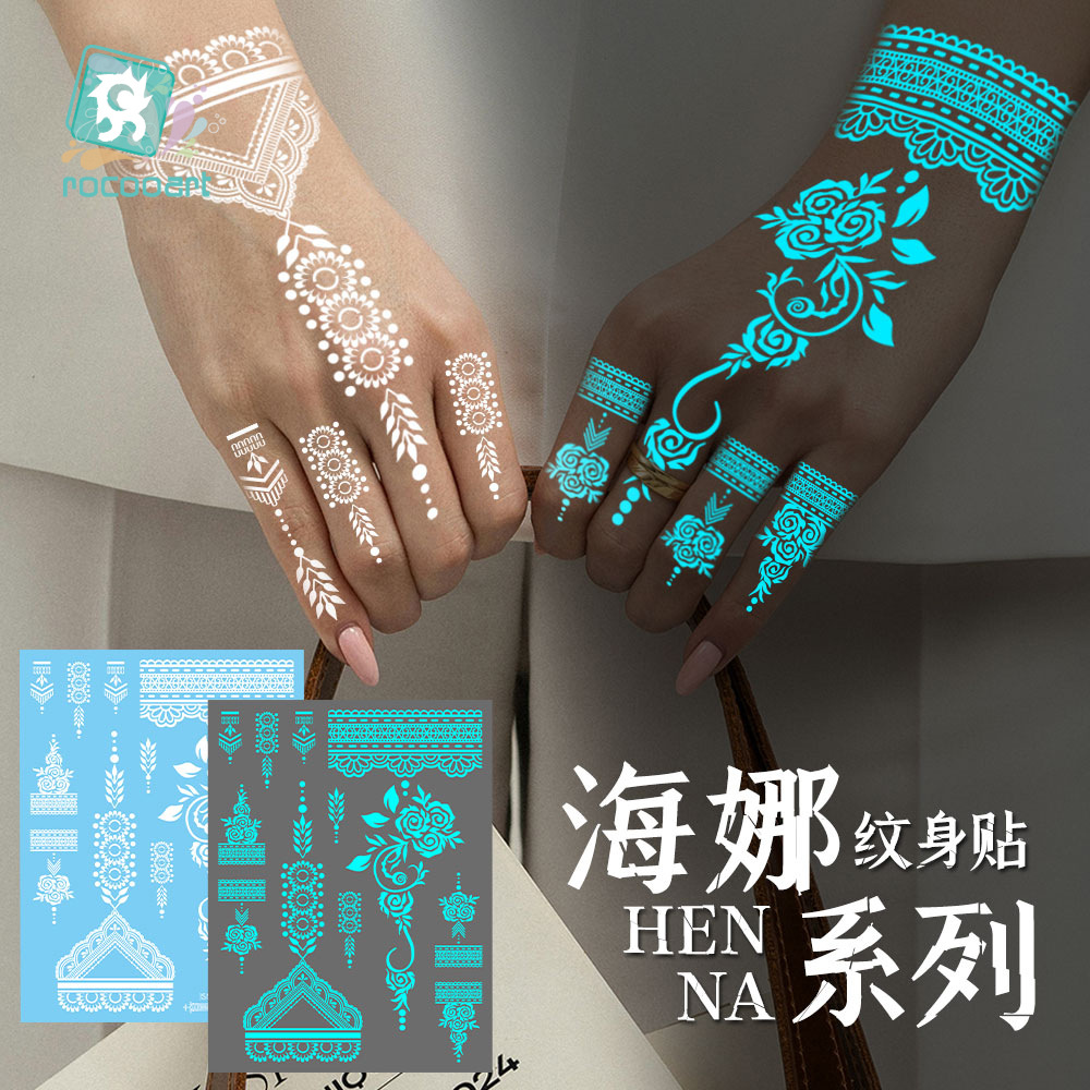 2024瑞卡竜の新型の越境海娜の夜光の白い刺青は高級感の顔を貼ってハンナの腕を貼って鎖骨を貼ります。