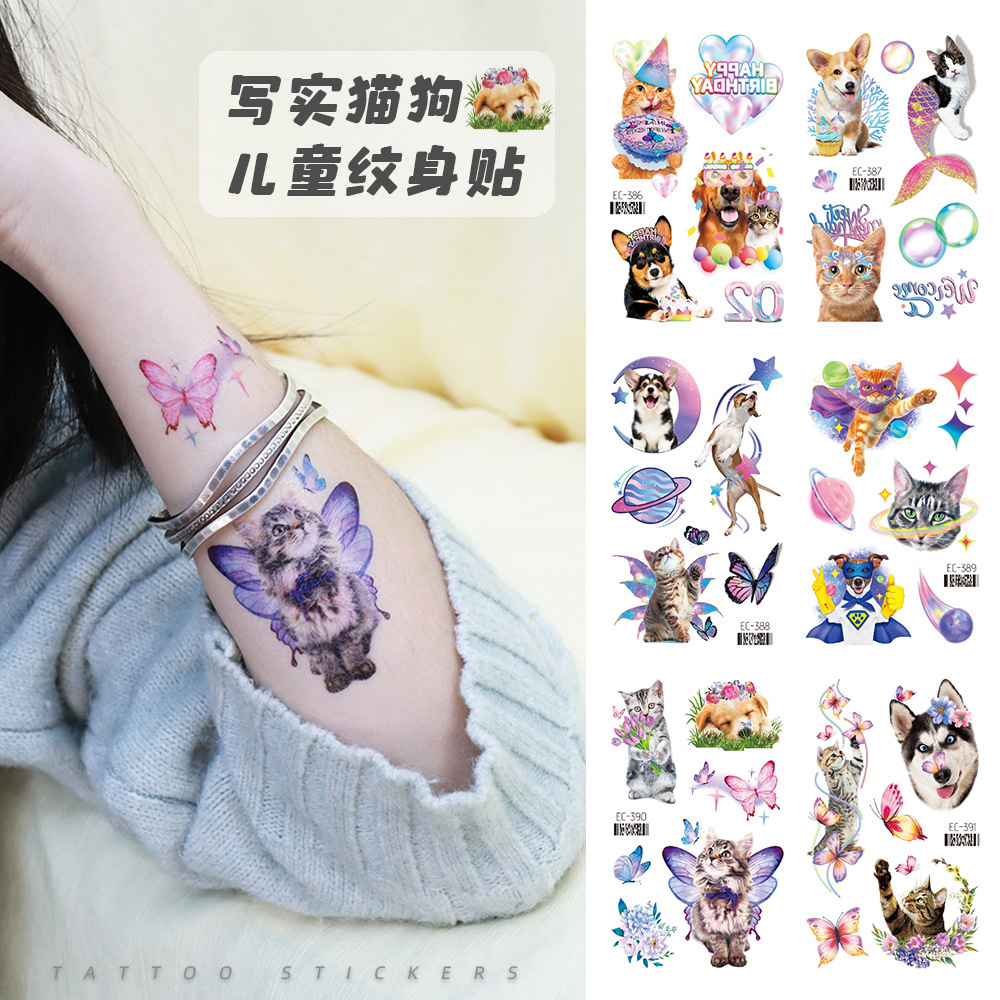 瑞卡竜の新型防水子供の刺青は創意的な漫画の動物の猫と犬の刺青のシールの臨時の文体を貼って貼ります。