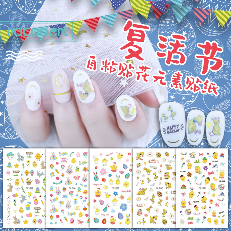 防水小清新ネイルステッカー自己接着イースターネイルステッカー個性diy祝日ネイルアート用品卸売り
