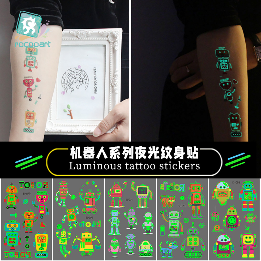 メーカー直販防水タトゥーステッカーロボット漫画夜光刺青子供顔貼り腕貼り卸売り