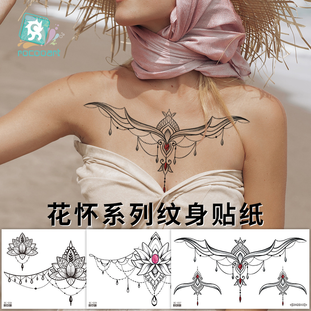 2022新型国境を越えたソース防水タトゥーシールシンプルな白黒花胸骨貼り個性タトゥー卸売り