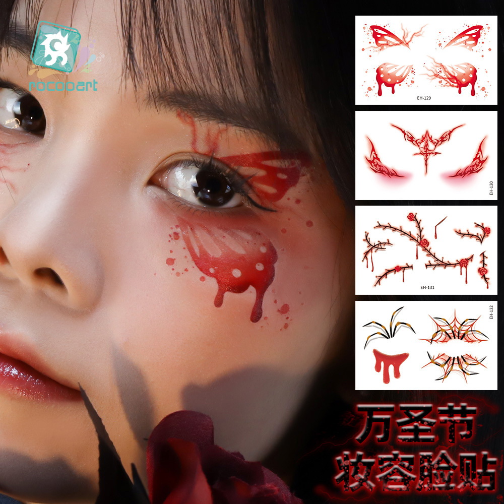 Ruikalong ハロウィンステッカー フェイシャルメイクアップ タトゥー フェイスステッカー 傷跡 防水 ホラー 面白い 傷跡シミュレーション