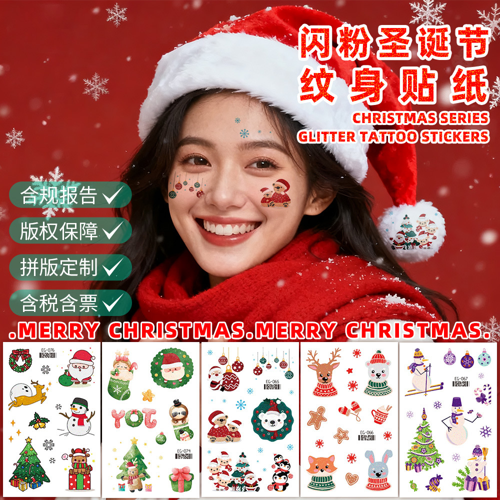 新しい国境を越えたスポットのキラキラした模様は子供の漫画のクリスマスのキラキラした模様に顔を貼って鹿のシールを貼った