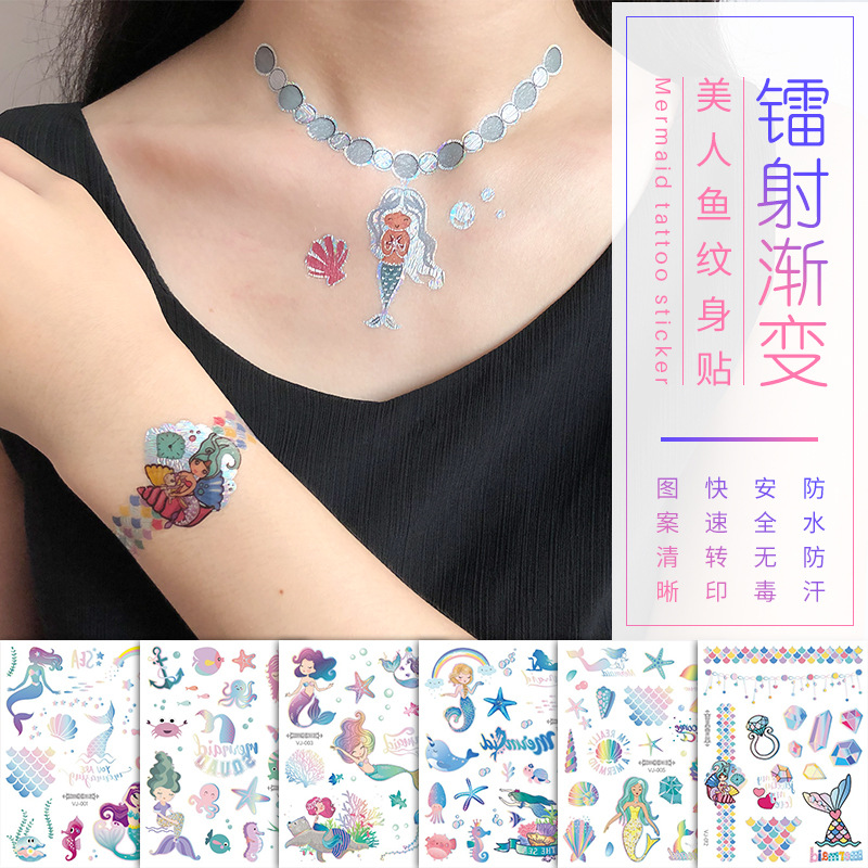 国境を越えた新商品の人魚の紋章はオリジナルの個性のファッションのレーザーの金属の刺青の貼る紙を貼ります。