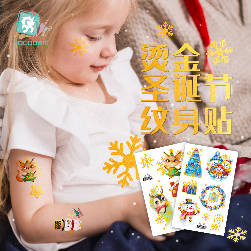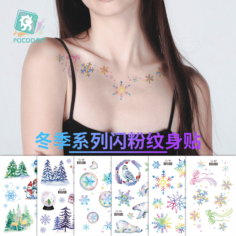 2023瑞卡竜クロスボーダー新型フラッシュ粉クリスマス雪花子供漫画かわいい防水冬タトゥーシール