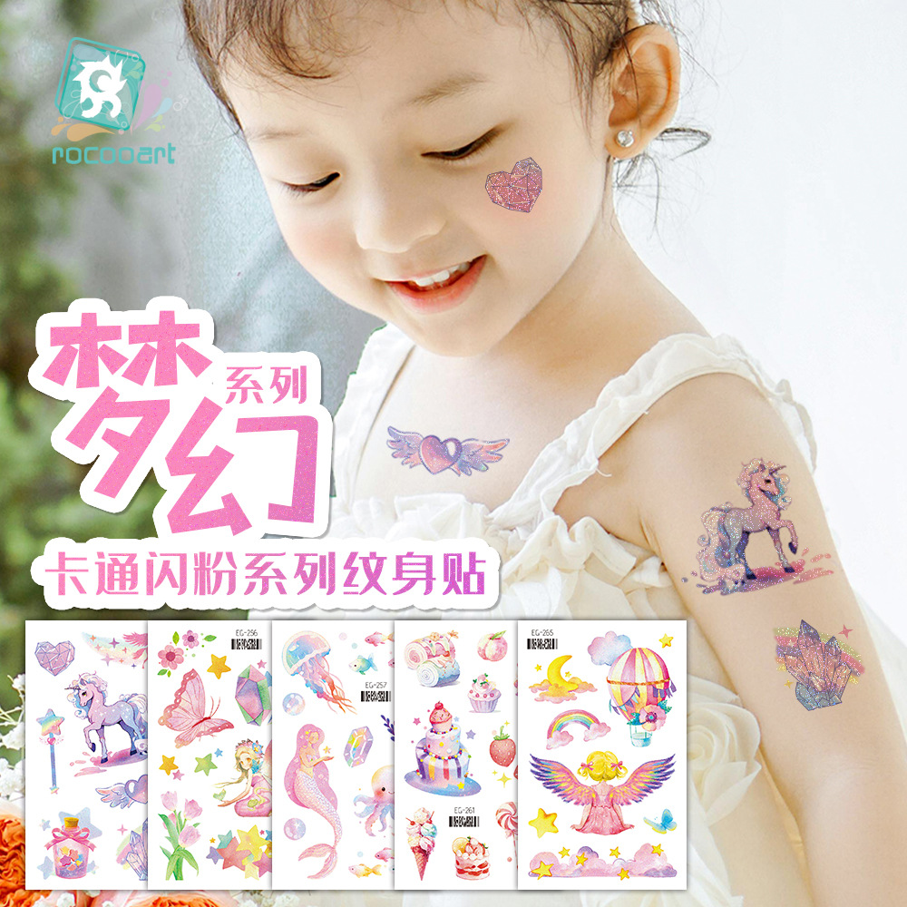 2024瑞卡竜クロスボーダー新型夢閃粉ユニコーンパンダウサギ子供漫画かわいい防水タトゥー