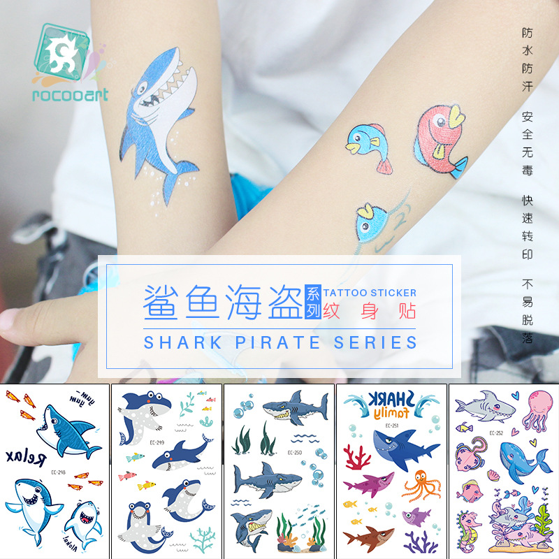 国境を越えた新型防水児童タトゥーは誕生日パーティー海賊サメのタトゥーシール漫画のボディ卸売りを貼った
