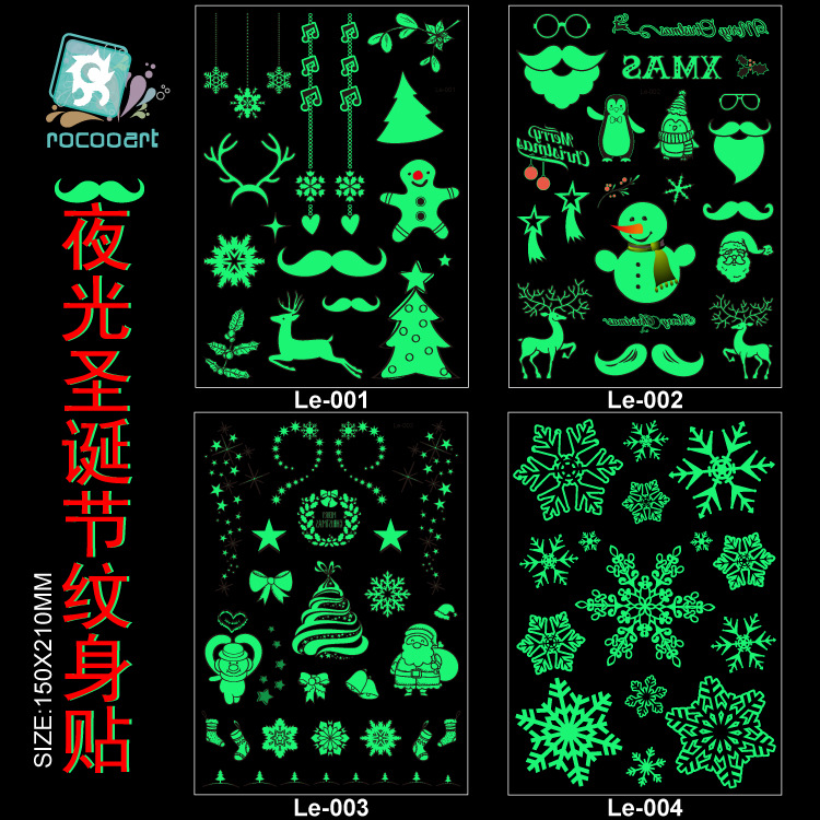 瑞卡竜の新型の夜光の刺青はかわいいクリスマスの刺青のシールの防水の子供の雪の刺青の顔を貼ります。