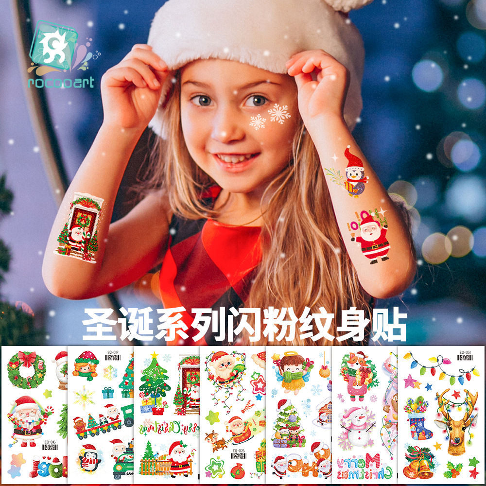 瑞卡龍クロスボーダークリスマス白墨閃粉タトゥー貼り子供漫画サンタクロース祝日パーティーシール