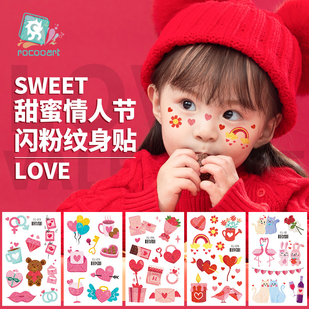 瑞卡竜クロスボーダーの新型フラッシュパウダーバレンタインデーのかわいい愛のカップルの刺青の貼り紙の臨時の全身の貼り紙