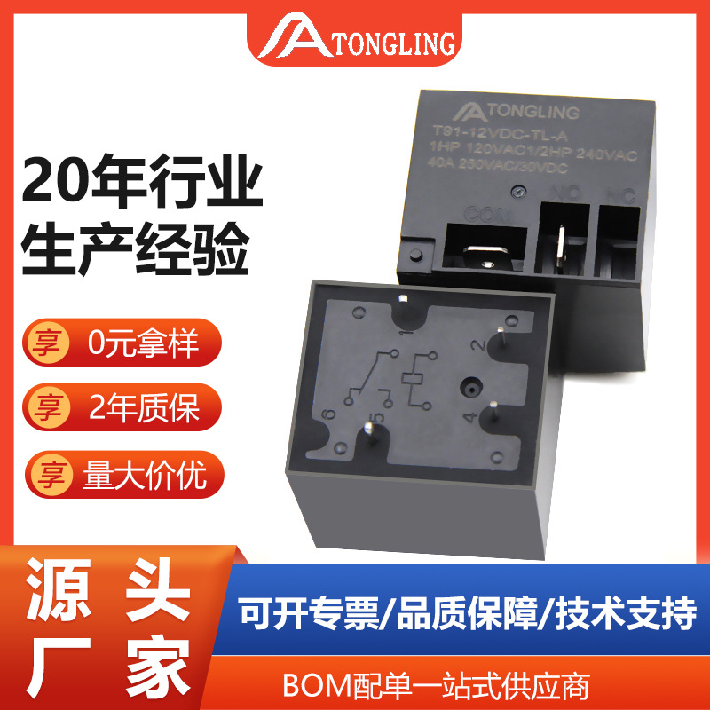 リレー12v4足40aハイパワーリレーt91常開給湯器リレー通霊メーカー直供