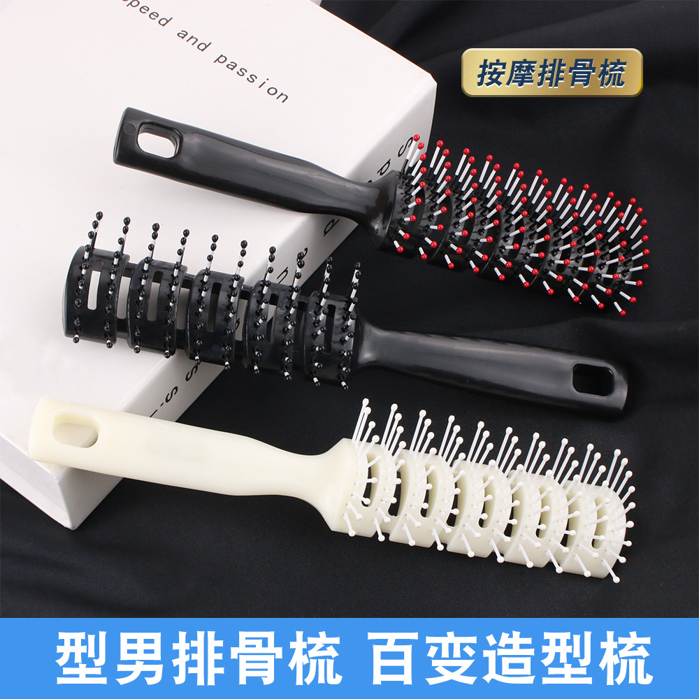 玉源工場はプラスチックの9列を卸売りして、男性の油の頭の背もたれのふわふわしている形の櫛の丸みを帯びています。