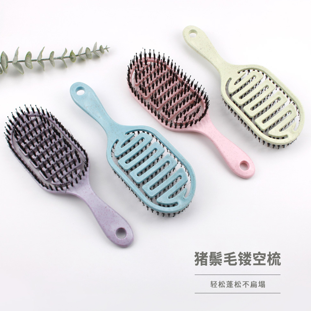 玉源は丸い弓型の透かし彫りのもとの生態のブタのたてがみの毛の順豊のマッサージの櫛の環境保護の麦わらの取っ手の櫛を提供します。