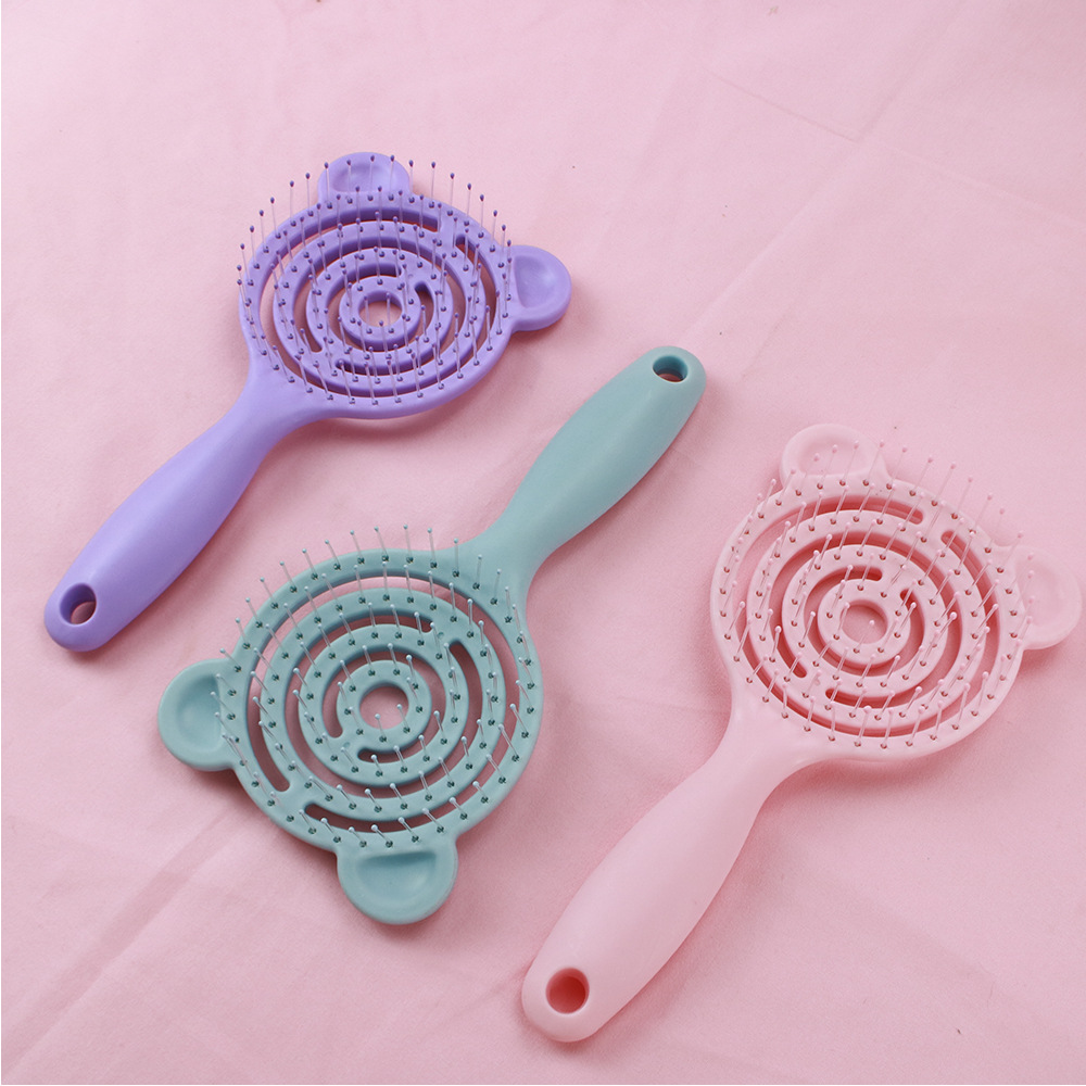子供版アニメの透かし彫り順髪櫛パンダのふわふわした形の櫛透かし彫り設計は均一に放熱して乾湿両用です。