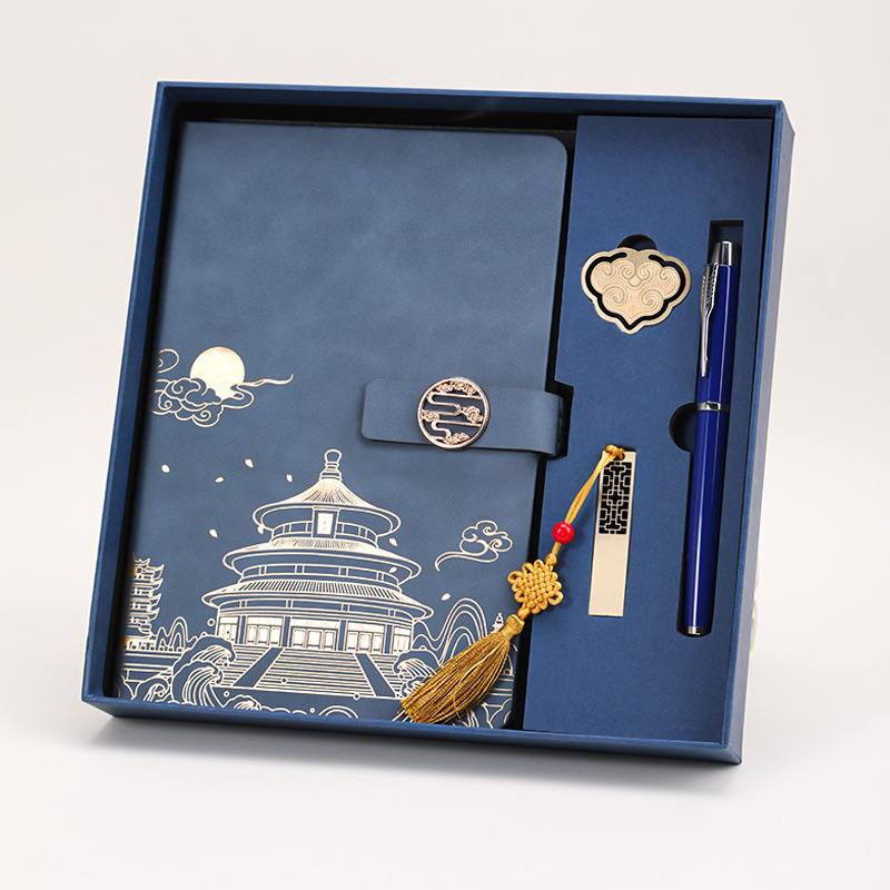 国潮のノートのギフトボックスのセットの国風の会議の記録のこの企業はロゴの皮の手帳のノートを印刷することができます。