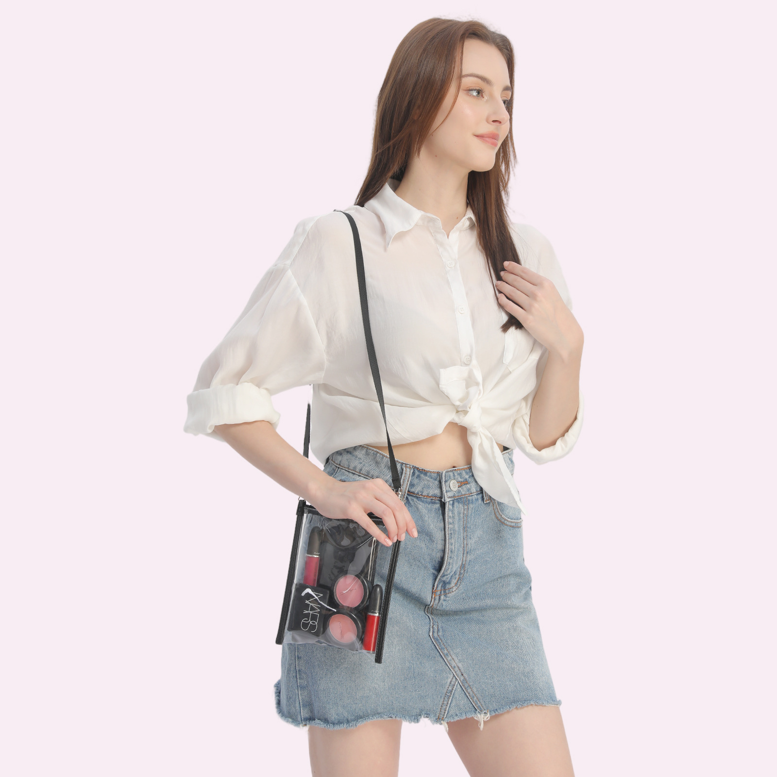 アマゾン透明PVCクロスボディバッグ防水スタジアム透明バッグ調節可能な旅行アウトドアスポーツ収納バッグ