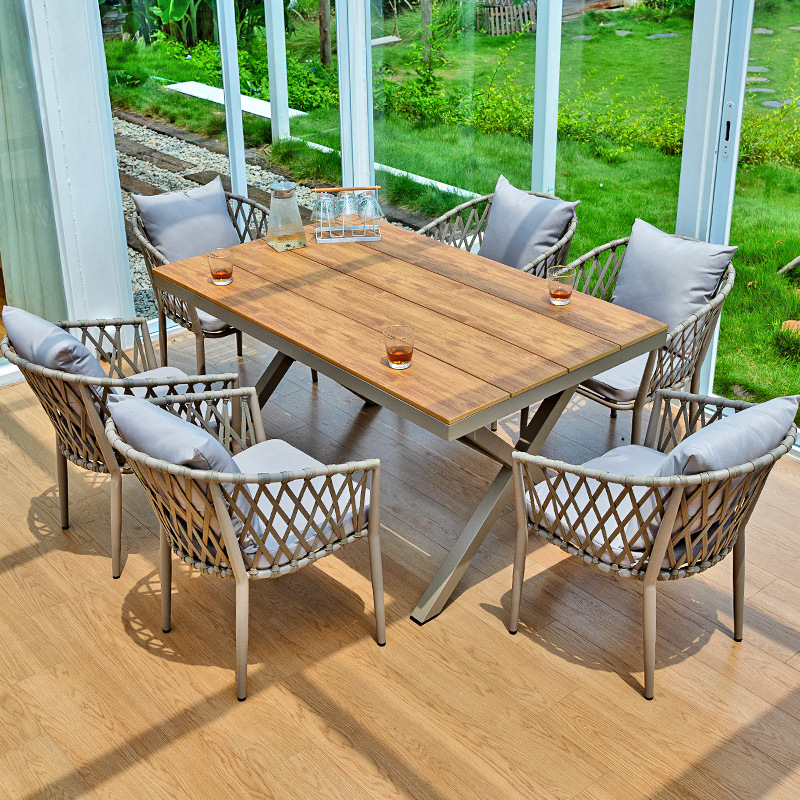 屋外藤編みダイニングチェア北欧チーク材テーブルと椅子防腐日焼け止め別荘家具屋外藤椅子ベランダ売り場