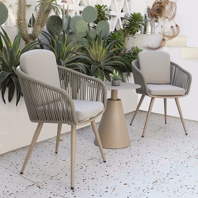 屋外レジャーテーブルと椅子ロープ編みガーデンバルコニー中庭ヴィラ屋外テラス防水日焼け止め北欧籐椅子家具
