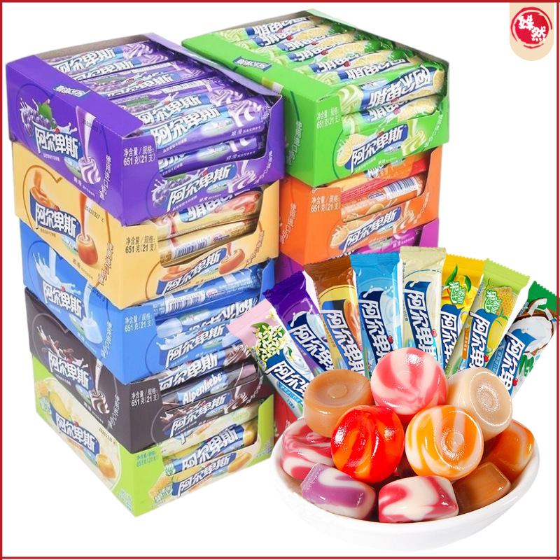 現物卸売りアルペン33g35gハードキャンディーは果物の味をよく噛んでいます。