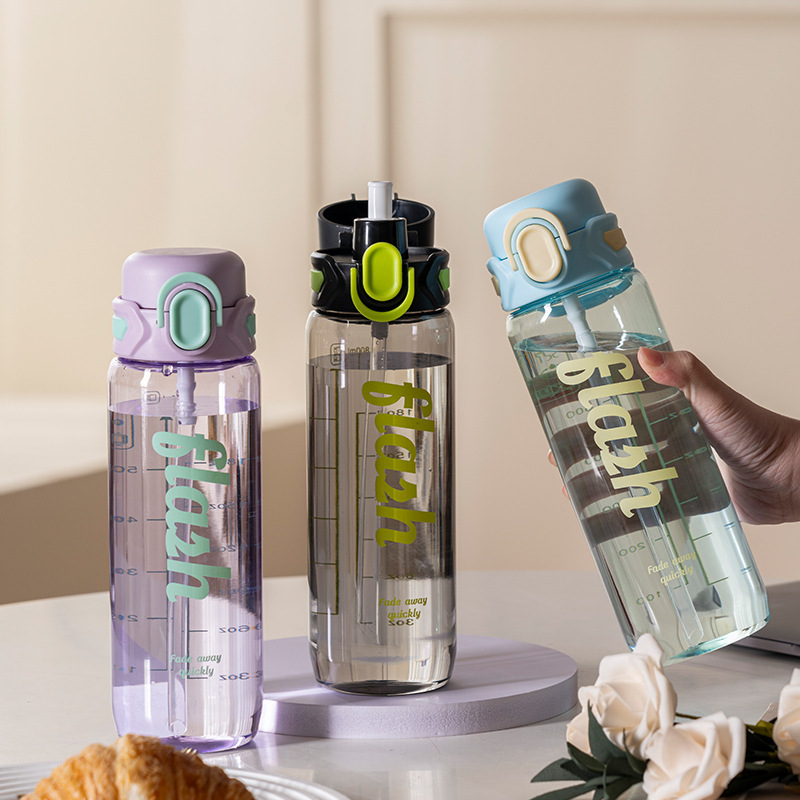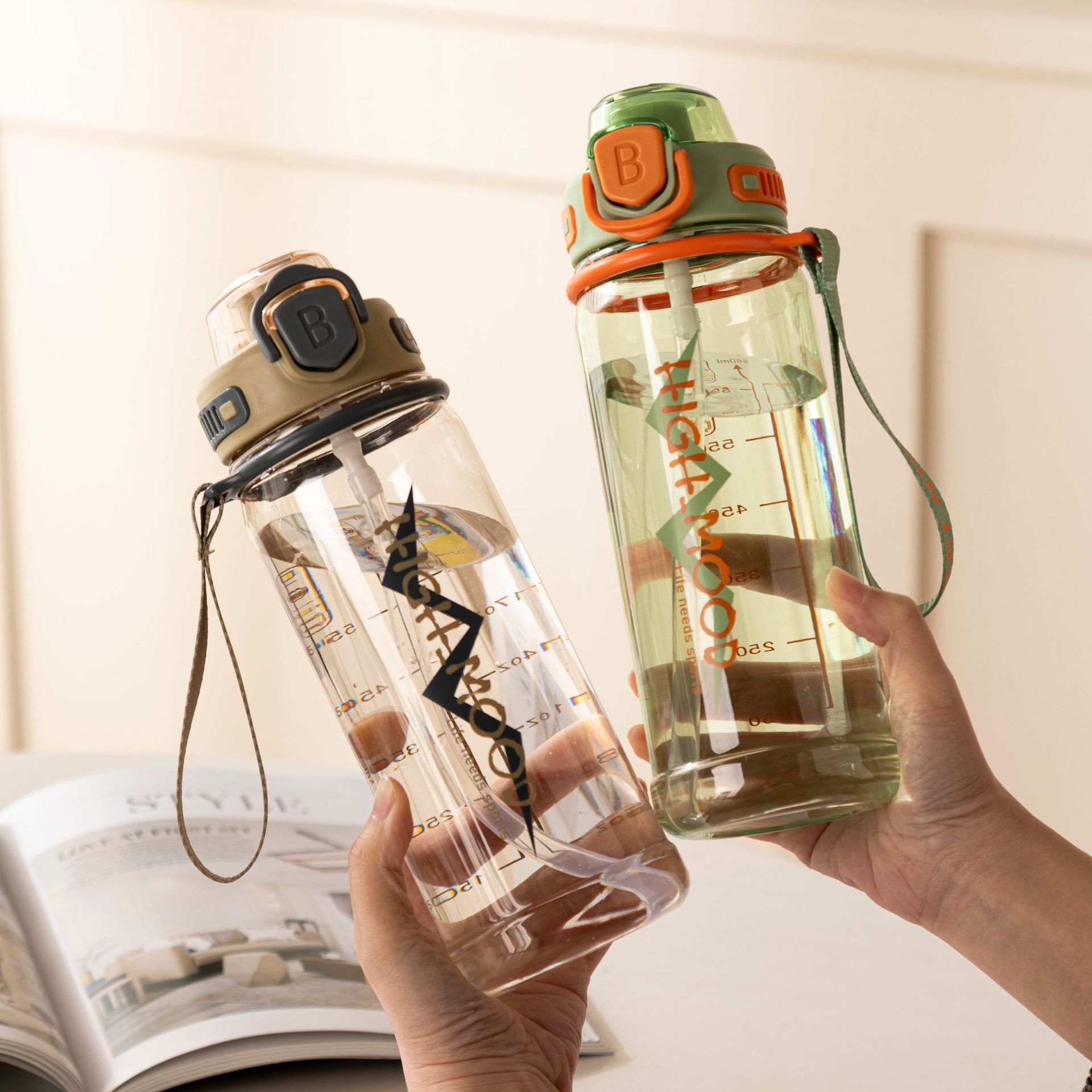成人ストローコップ大容量水筒携帯夏高颜値学生プラスチックコップ目盛付き新型女性