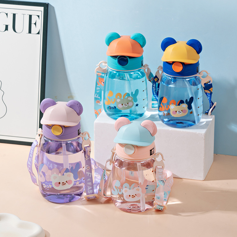 2025年新型プラスチック創意子供ストラップ水筒幼稚園学生可愛い水コップ熊ストローコップ