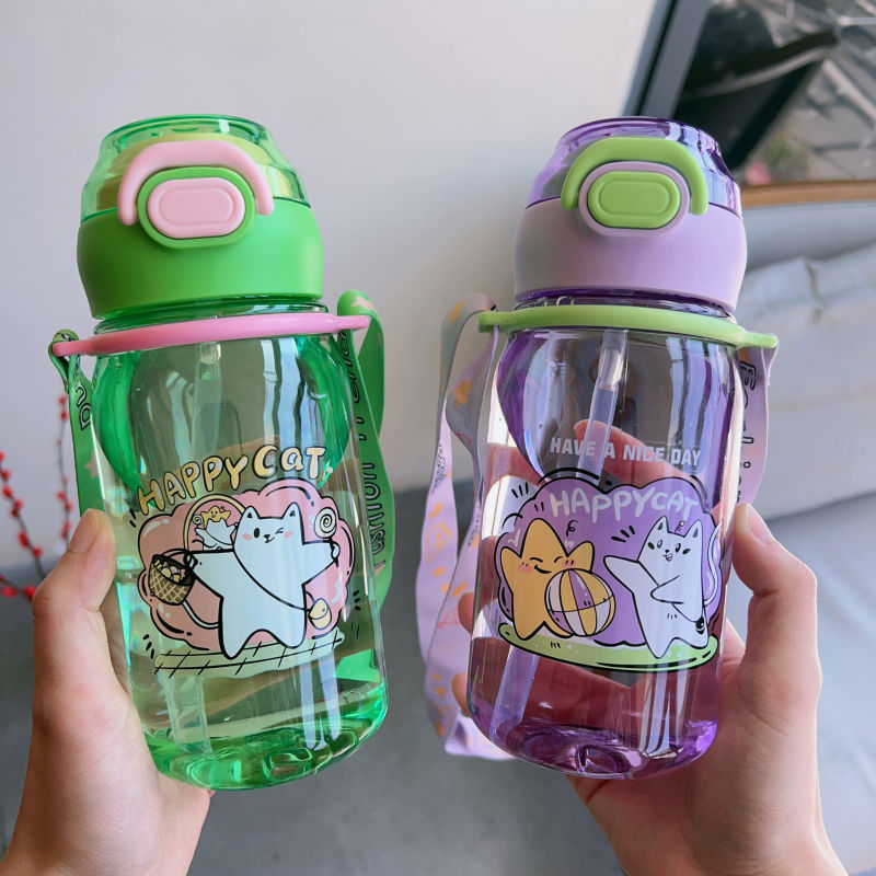 夏の携帯水筒屋外学生大容量スポーツ水筒手持ちストレートカップ子供漫画プラスチックカップ