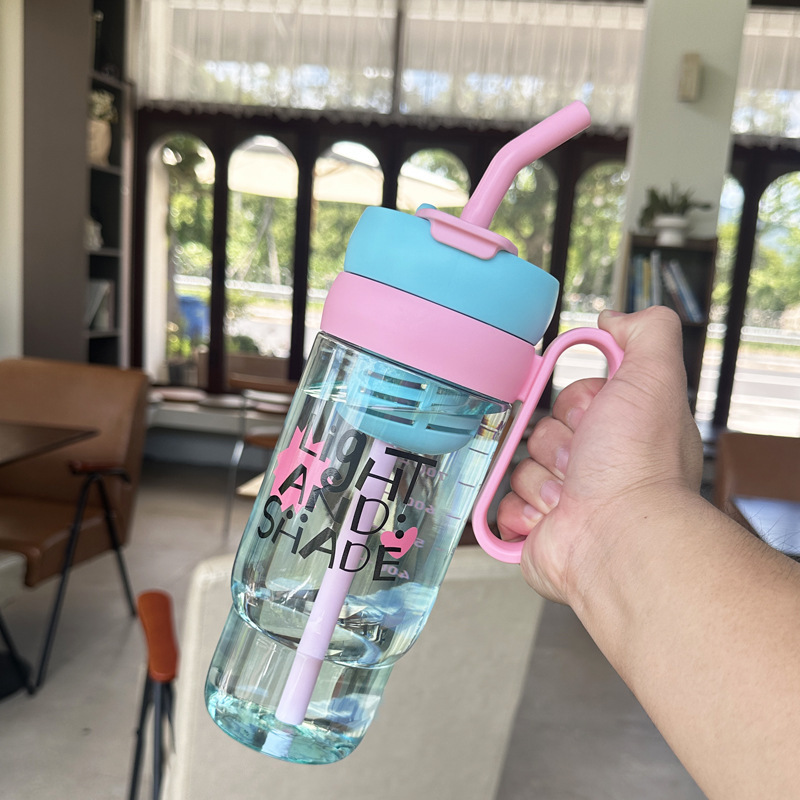 夏の新型コップ大容量プラスチックコップ学生屋外スポーツコップ高顔値耐高温ストロー携帯