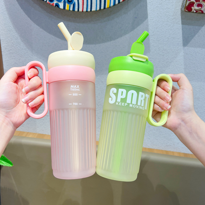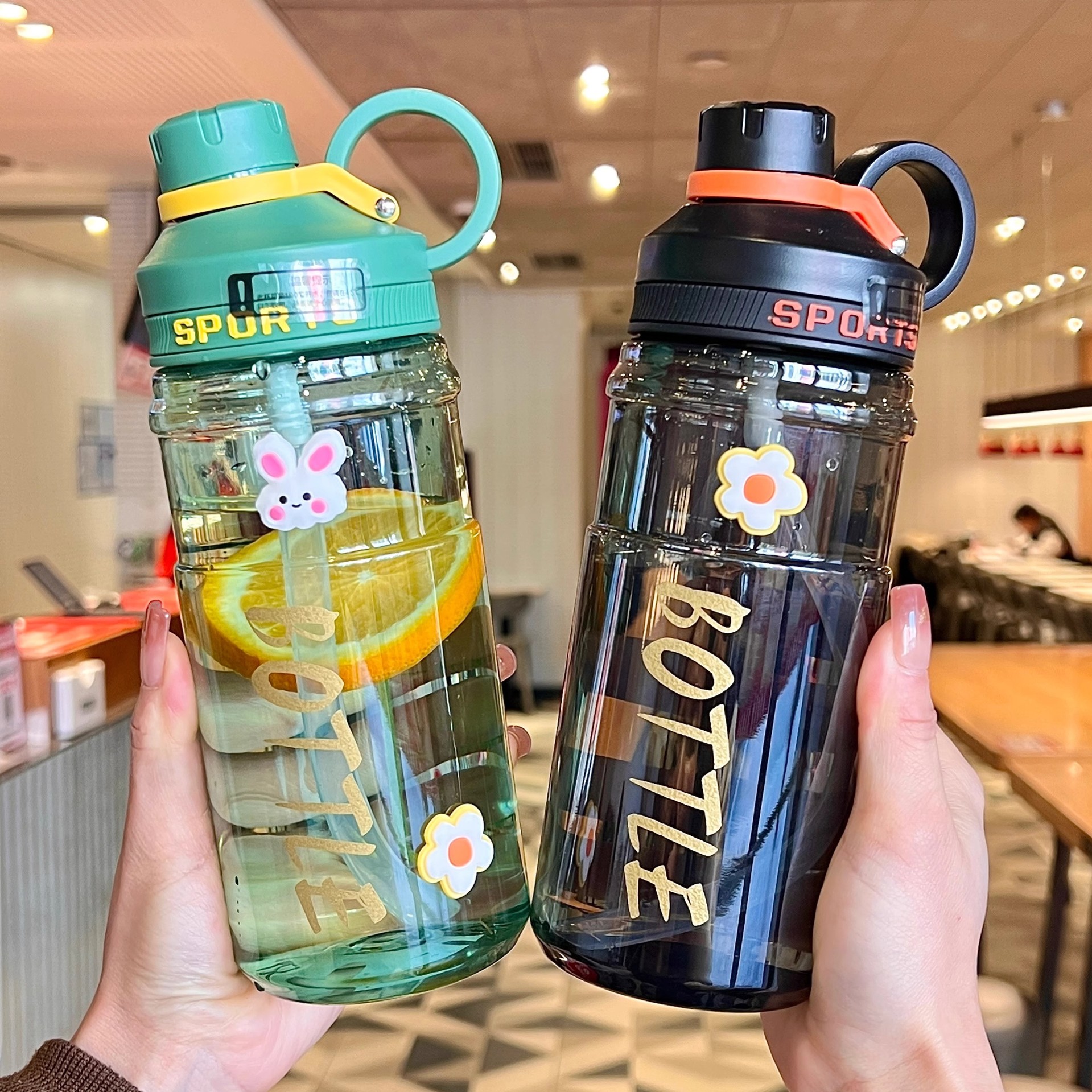 ネット赤プラスチックコップ大容量携帯夏ストロー付きシンプルな男女学生屋外フィットネス運動コップ