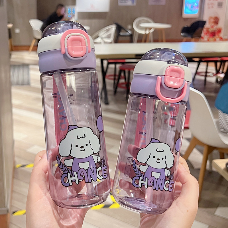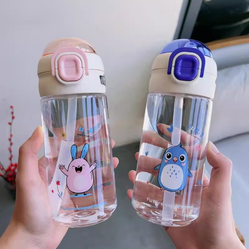 ネット紅爆型児童プラスチック双飲カップかわいい弾み蓋屋外携帯ストロー直飲学生運動カップ