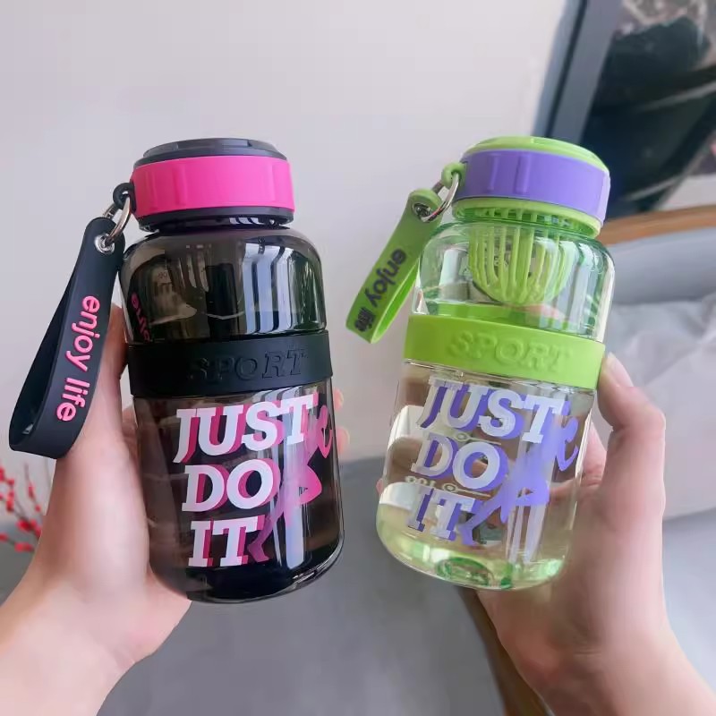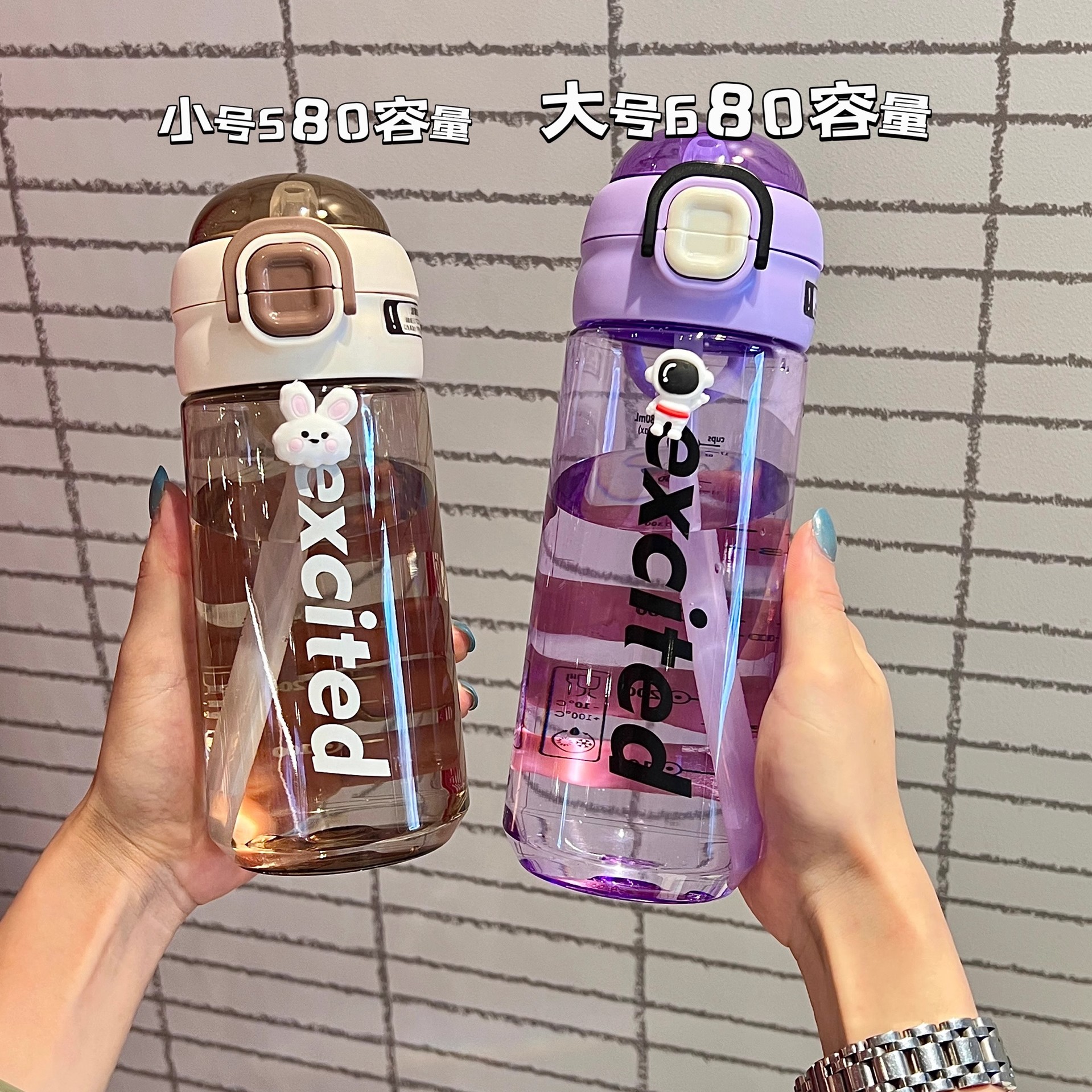 韓国版スポーツポータブルカップ高颜値男女学生屋外フィットネス二重飲ストローカップ耐高温プラスチックカップ