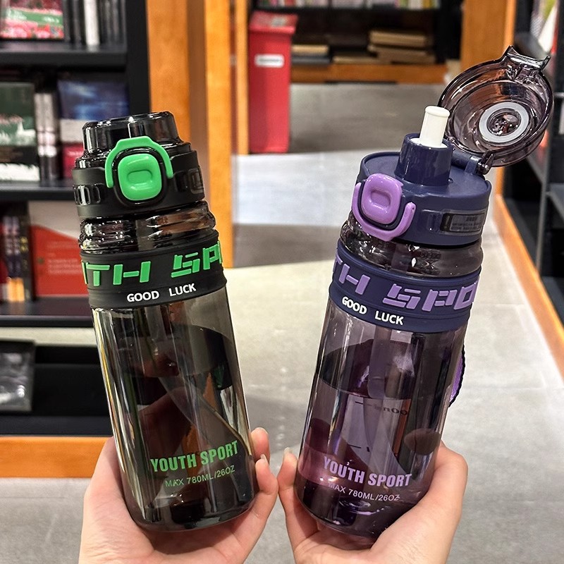 夏のスポーツフィットネスコップ大容量耐高温シンプルプラスチックコップ高颜値ストロー携帯学生コップ