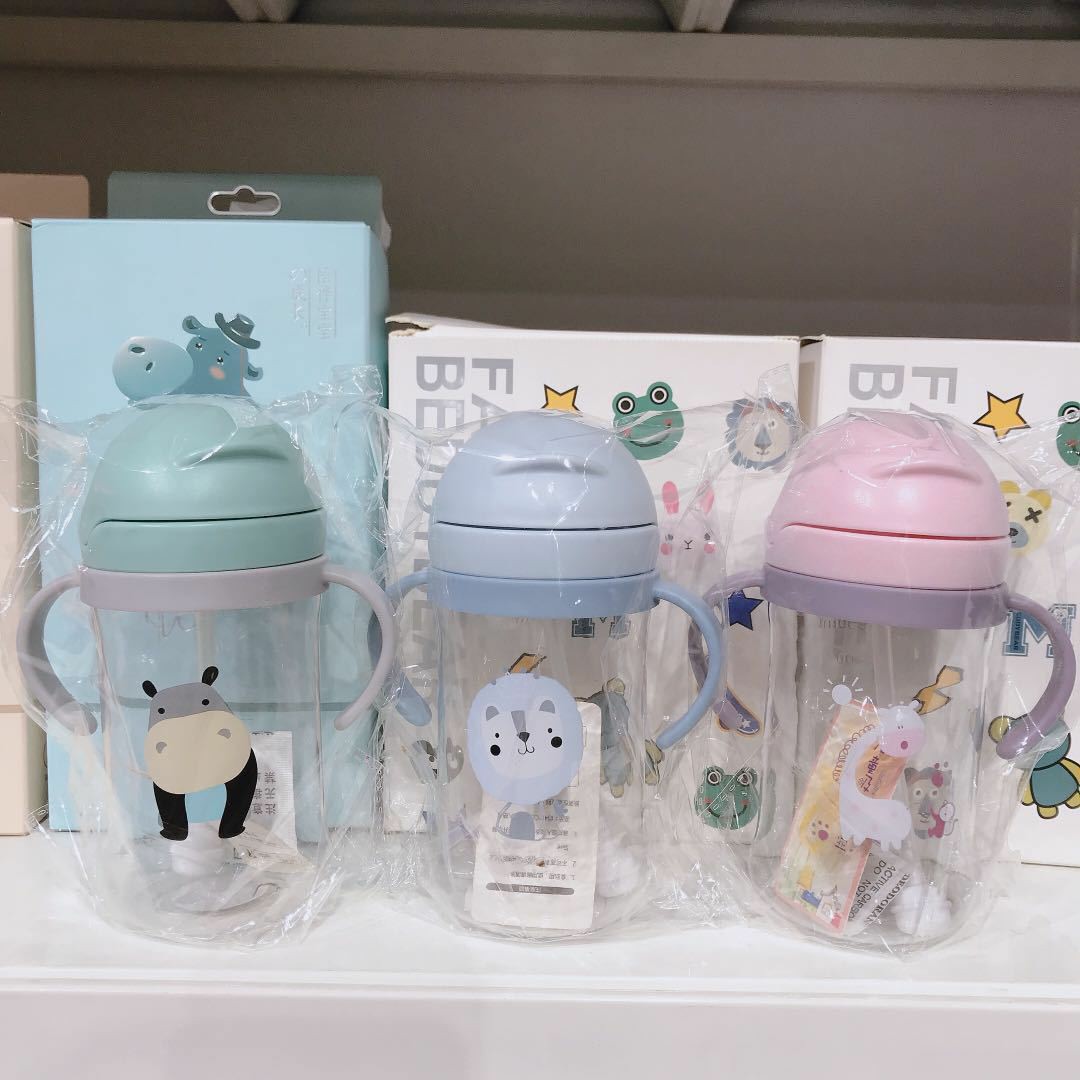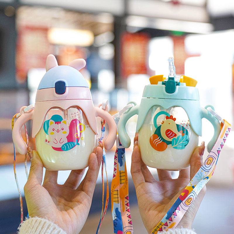 子供ストロー重力ボールストラップハンドル両用カップかわいいストローカップ漫画哺乳瓶赤ちゃんハンドル学飲カップ