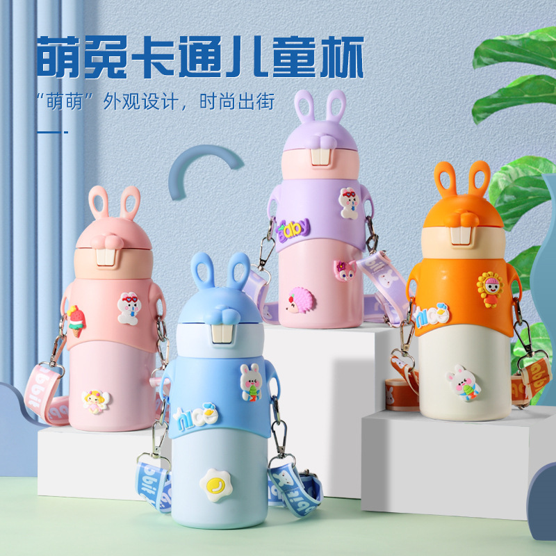 大容量316ステンレス子供保温カップ高颜値斜めショルダー携帯大腹カップアウトドアスポーツ水筒