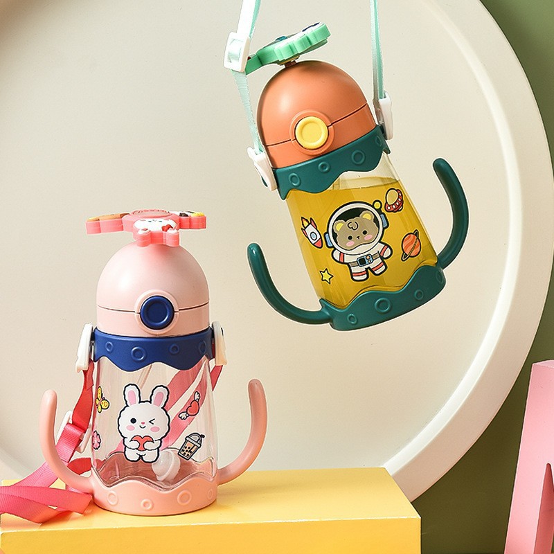 ハンドルストラップ両用ストローカップ男女赤ちゃんが水を飲む幼稚園のアイデア水筒が落ちないかわいいプラスチックコップ