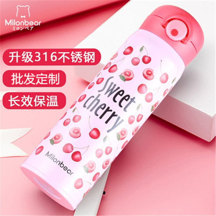 ミロン熊児童成人保温カップ直飲カップ316ステンレス転倒防止夏赤ちゃん外出携帯小